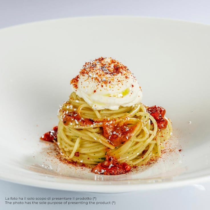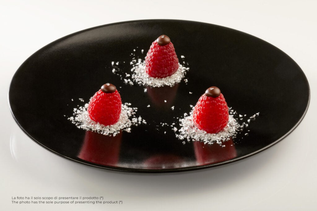 Gold Chef edible silver powder is odorless and tasteless, ideal for decorating any food, cakes or beverage without altering the balance of aromas and flavors(*). The aesthetic effect is assured, especially when combined with colors that contrast with the brilliance of silver, such as squid ink and zucchini green, or with delicate tones such as creamy white and creamy yellow. The powder gently “veils” the surfaces of drinks and dishes, giving them a brilliant aura(*).